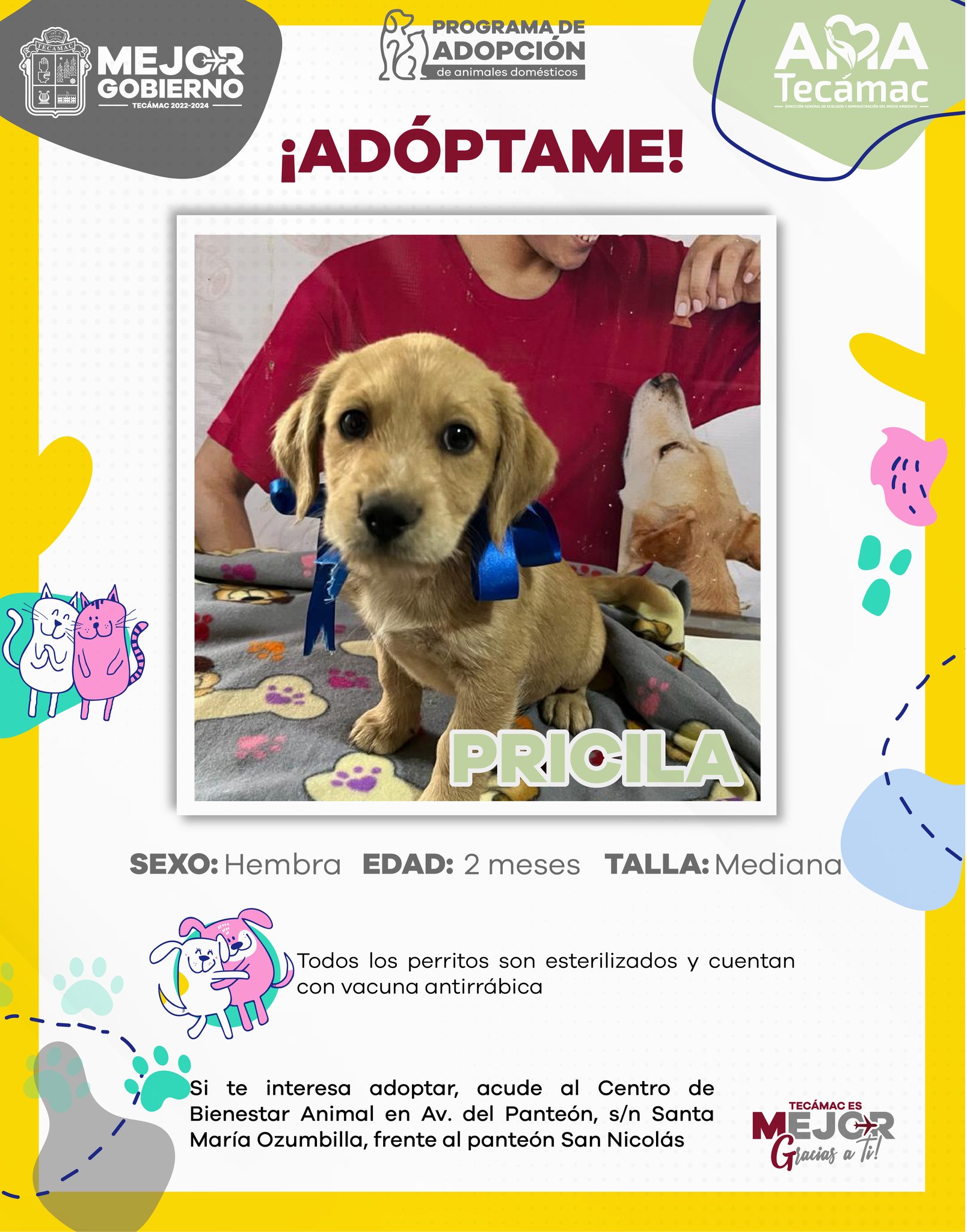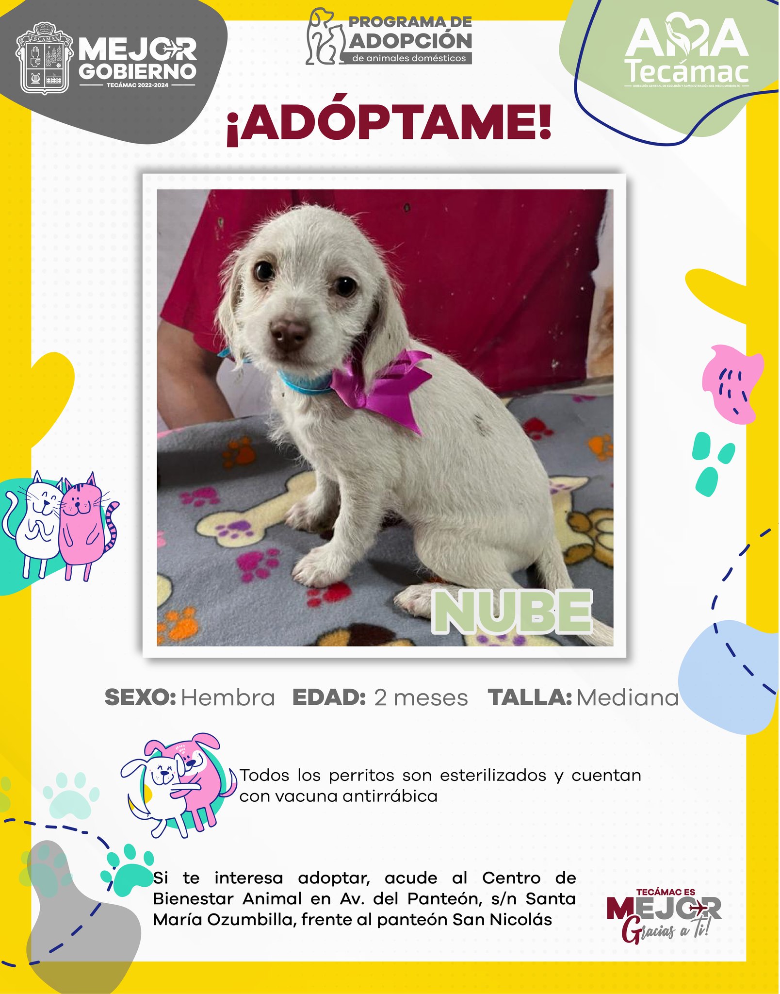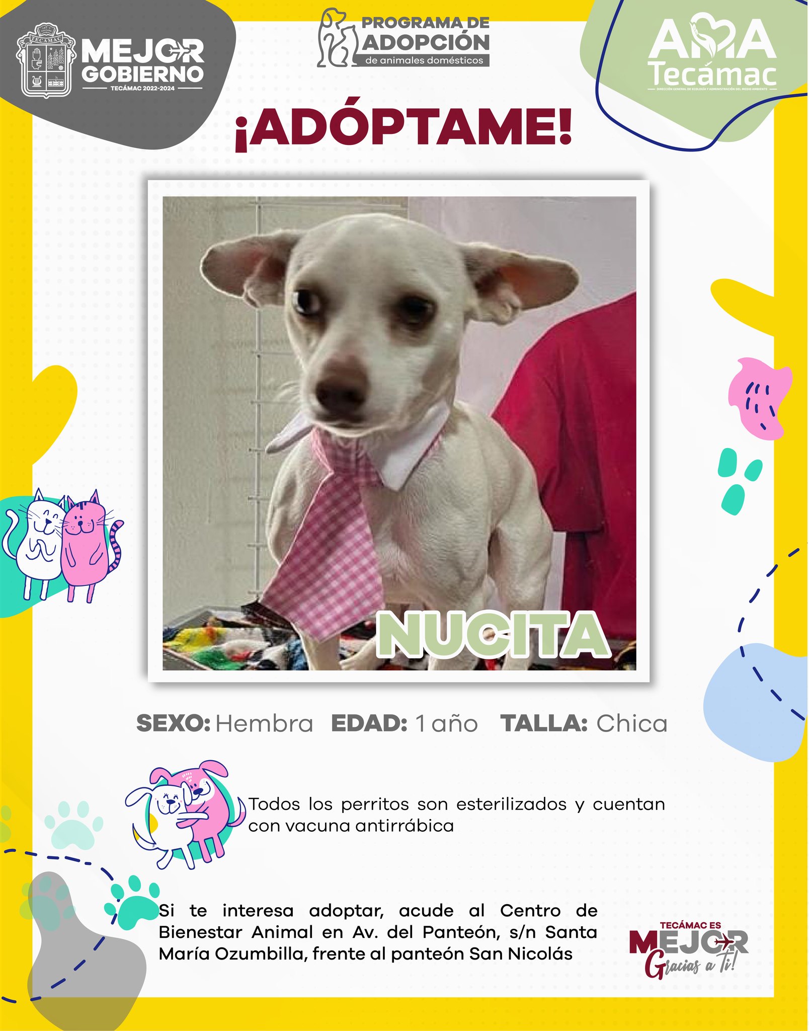 Esta iniciativa busca fomentar la adopción como una opción responsable frente a la compra de mascotas, promoviendo el compromiso y cuidado hacia los animales. El Gobierno de Tecámac hace un llamado a la comunidad para ser parte de esta noble causa y brindar un hogar a estos adorables seres que solo buscan amor y compañía.