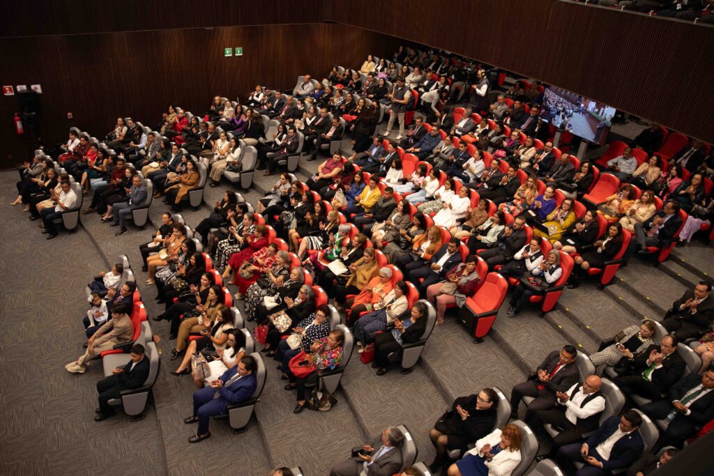 En el Auditorio “Mariano Arizcorreta” de los Juzgados Civiles y Familiares en Toluca, acompañada por las y los integrantes del Voluntariado, magistradas, magistrados, jueces y juezas, y el titular del PJEdomex, Fernando Díaz Juárez, la Presidenta Rangel De La O evocó los lazos tejidos desde enero a la fecha, y la superación -en 42%- de las metas anuales de las que se tiene registro.