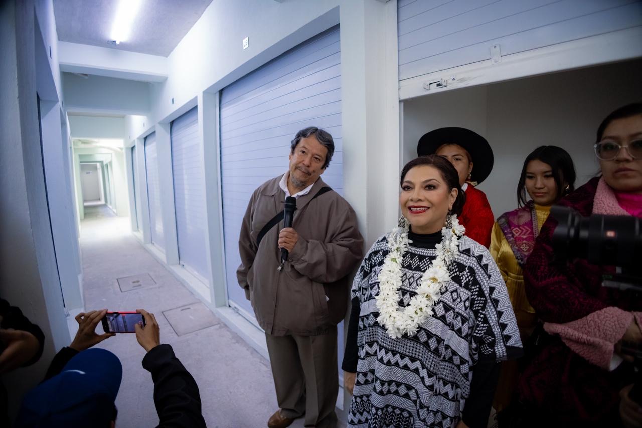 Finalmente, la beneficiaria del Conjunto de San Jerónimo 46, María Teresa Velázquez Arciniega, y la representante de la Sociedad Indígena en Acción AC, Rosalinda Escobar Sánchez, reconocieron la labor del gobierno por impulsar y garantizar el derecho al trabajo y a tener un lugar dónde vivir digna y adecuadamente, destacando que estas iniciativas ayudan a que las comunidades indígenas no sean desplazadas.